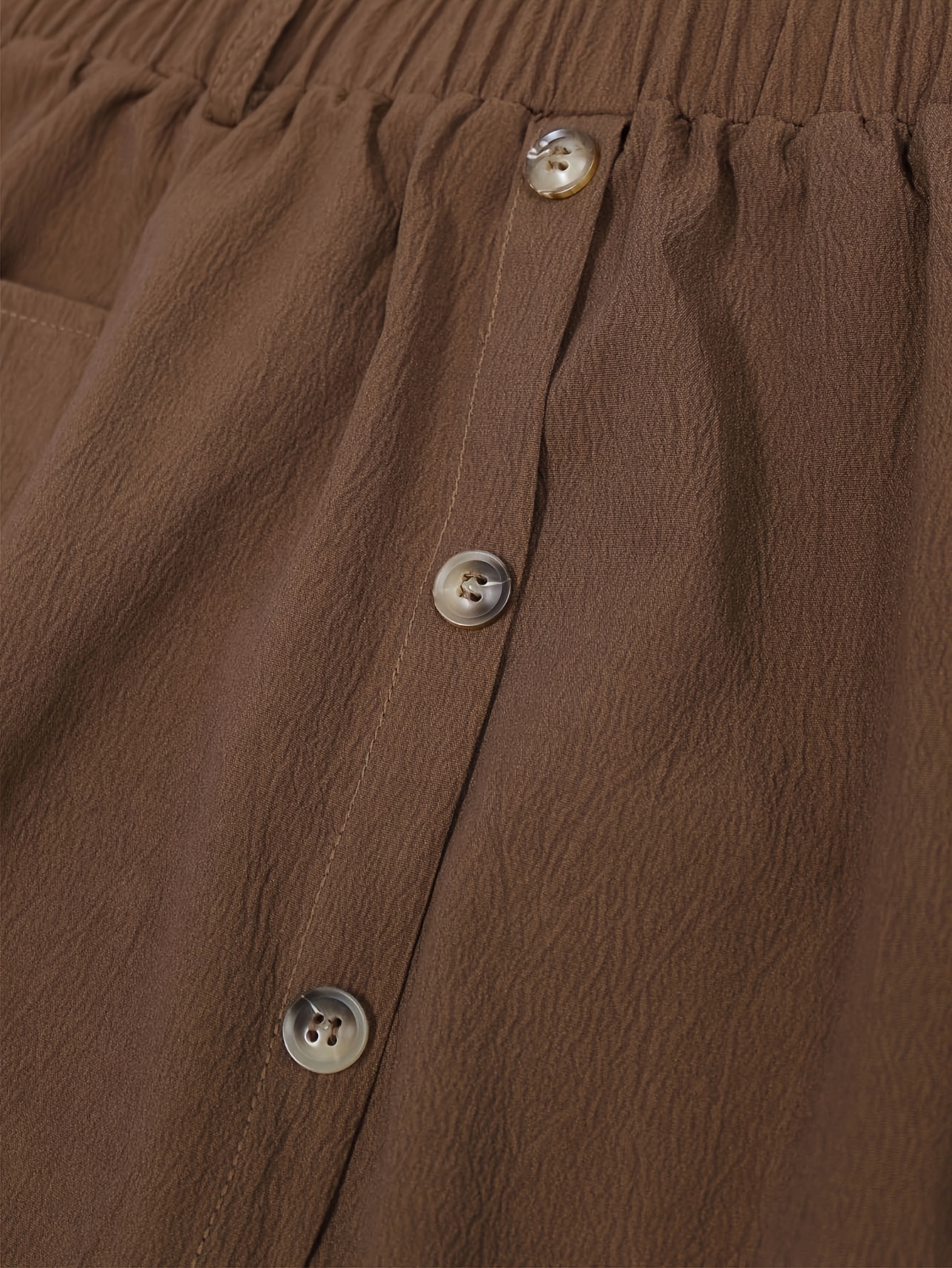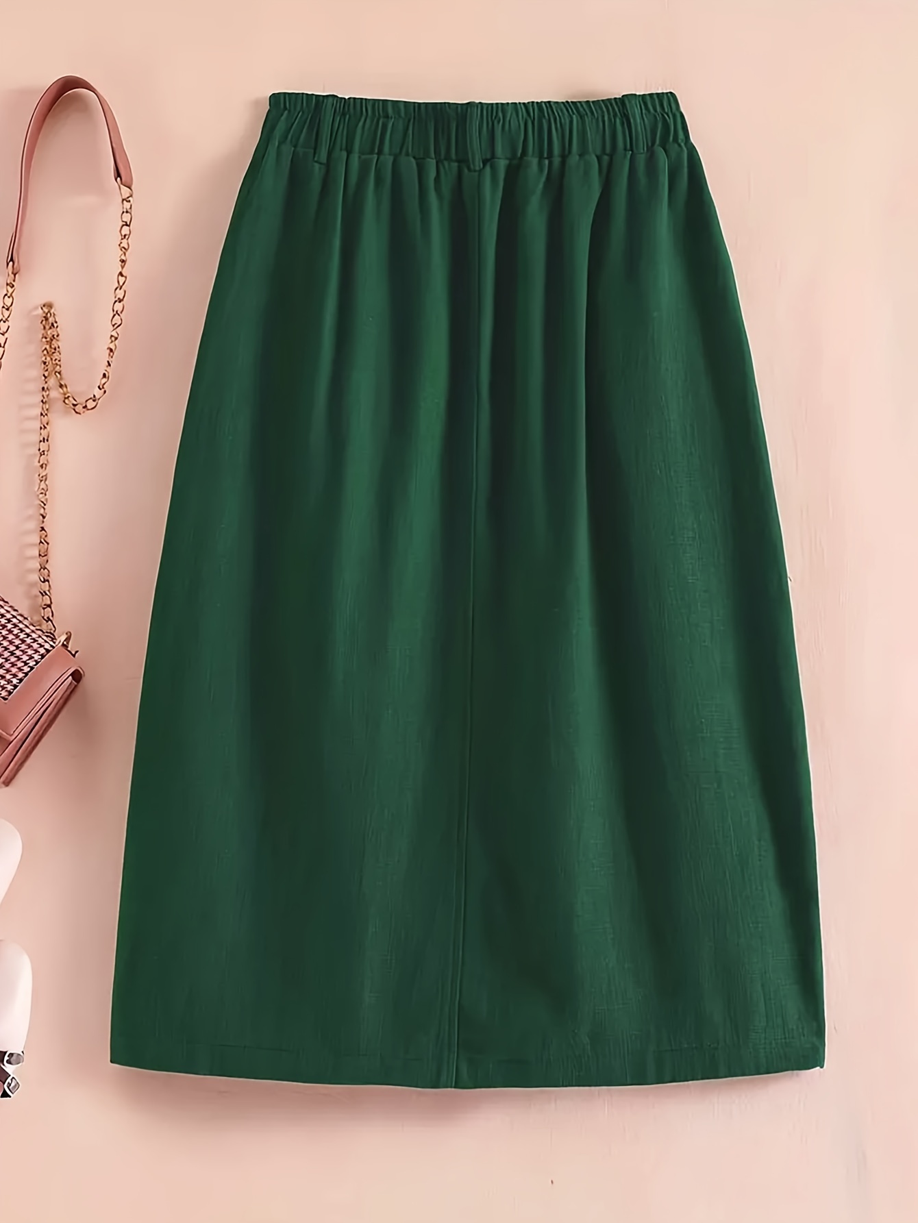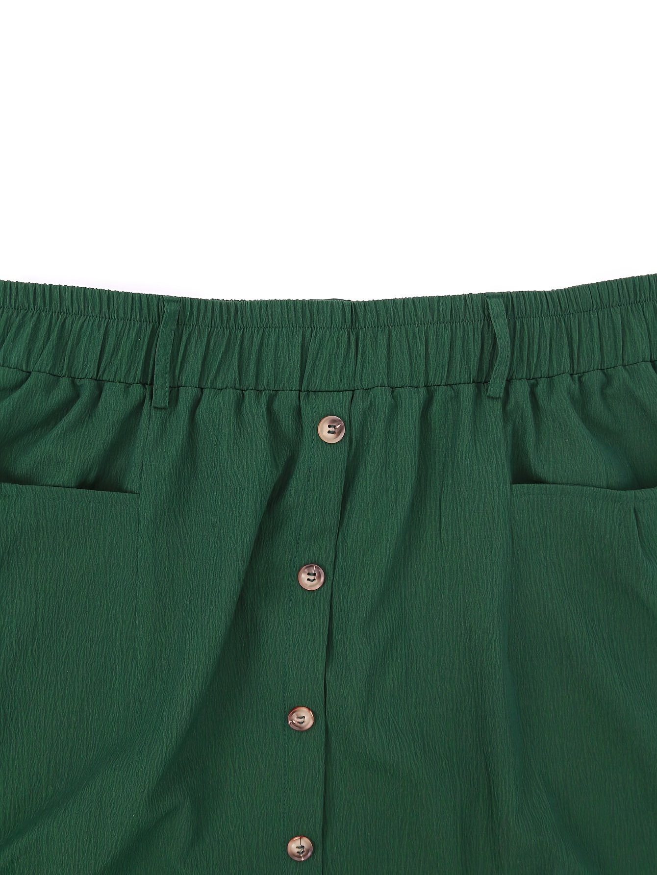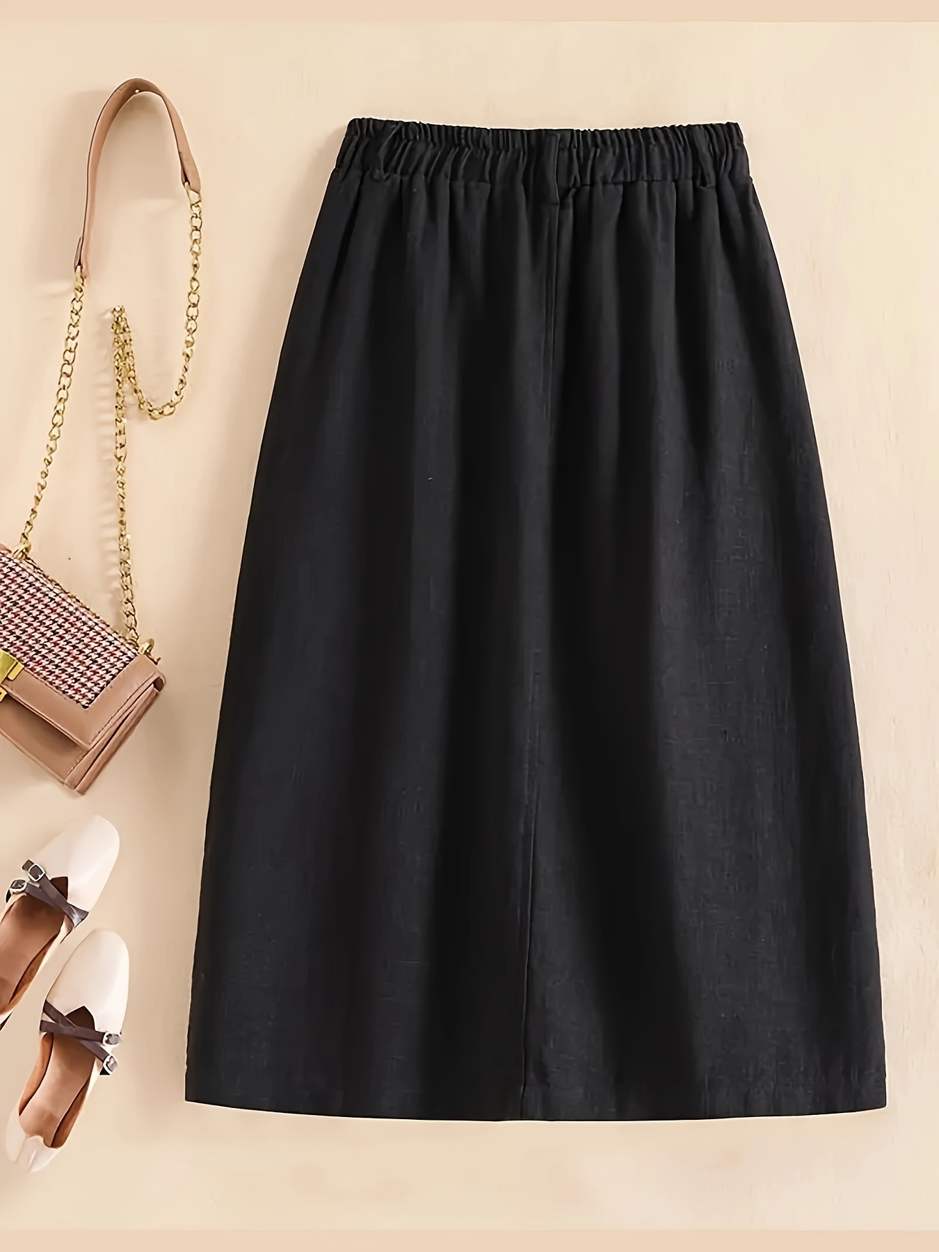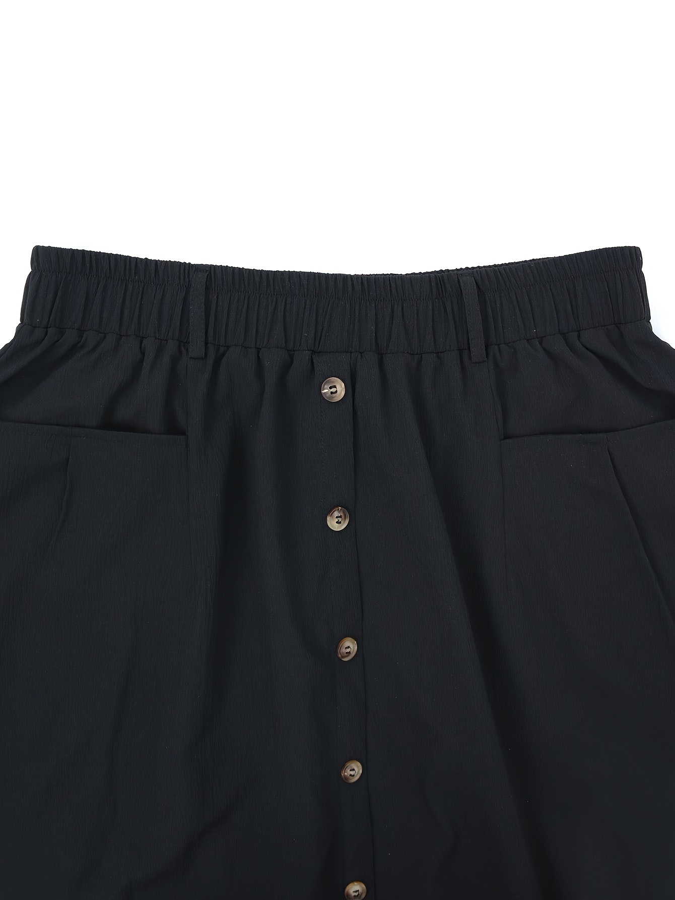 1 review for Button Front Pocket Design Skirt, Elegant Elastic Waist Split Hem Skirt For Spring & Fall, Women’s Clothing